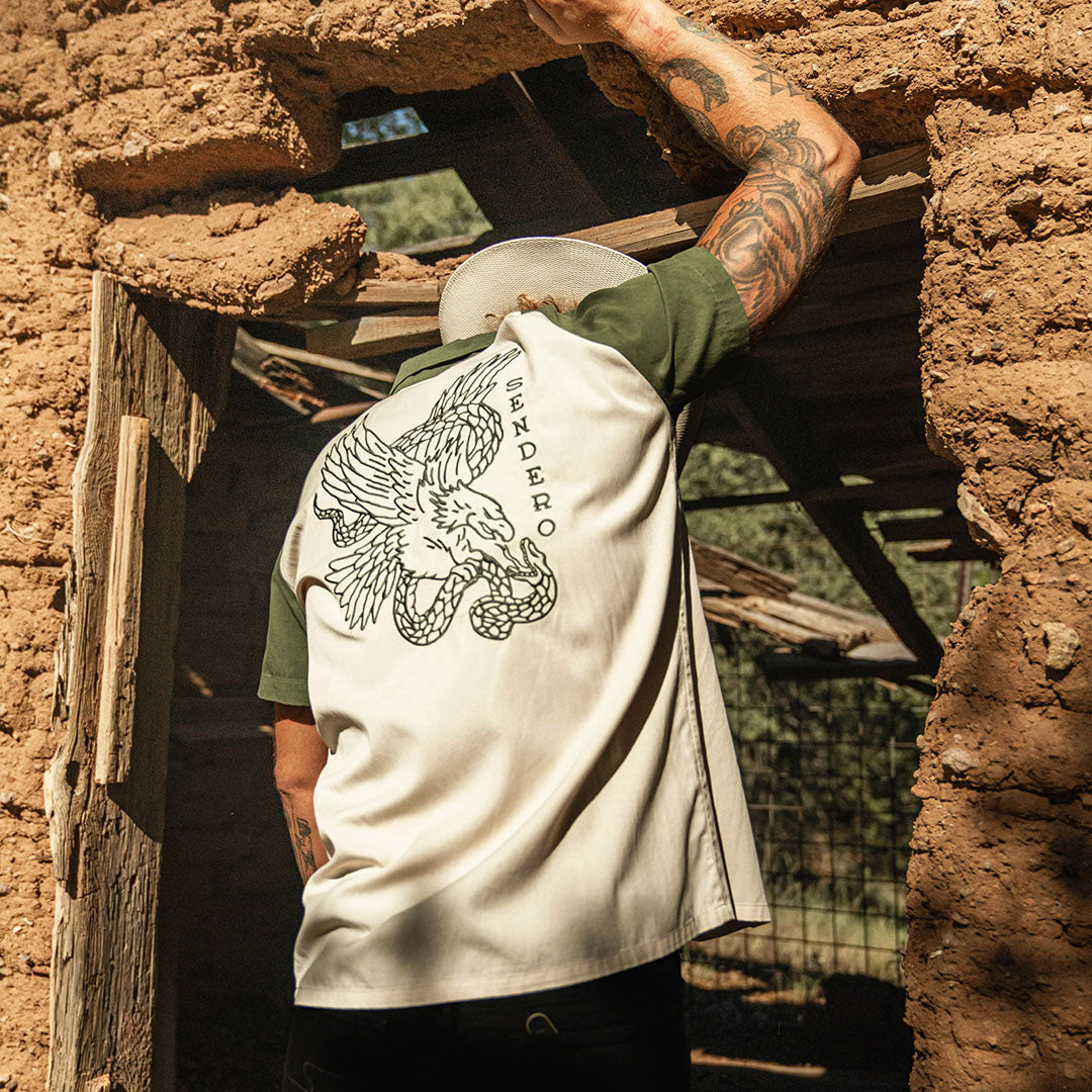Not too boxy, not too tight, and definitely not one of those shirts that makes you look like an extra in a low-budget rockabilly band. This two-tone classic has just the right amount of vintage without feelin’ like a costume. Soft, breathable, and built for whatever trouble you find yourself in, whether that’s runnin' the table at the dive or pretendin’ you know how to two-step. Looks like a thrift store gem, fits like it was made just for you, a little bit of "how it used to be."